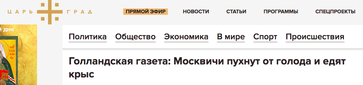 А дальше уже остальные издания начали сочинять от себя, у кого насколько бессовестности хватает. Телеканал “Царьград” досочинялся до того, что “москвичи пухнут от голода” (напоминаю, в статье даже намёка на это нет):