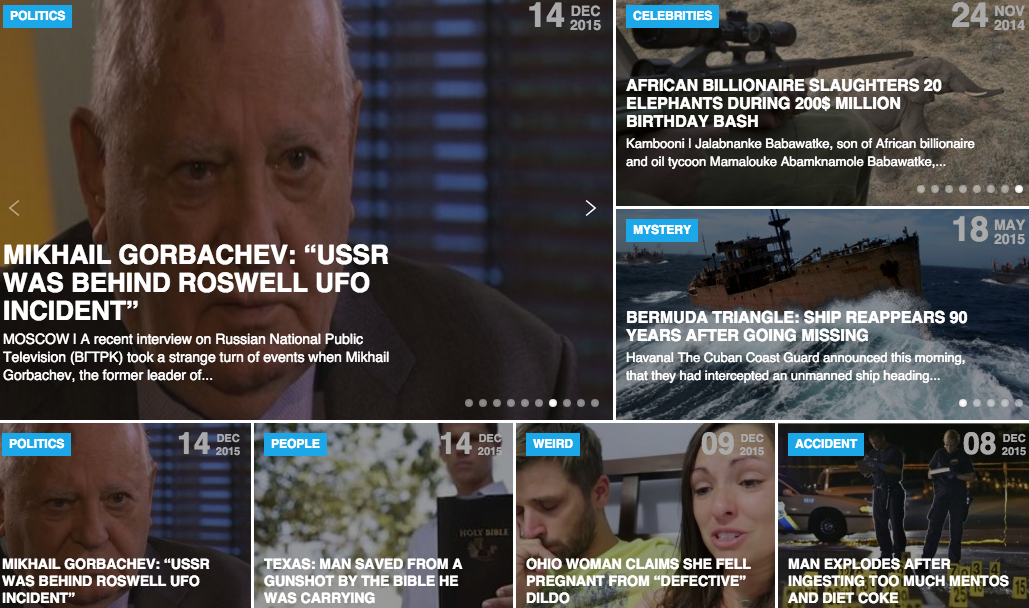 Кейтлин Дьюи отмечает тревожный тренд, ставший особенно заметным в 2015 году — производство фейков стало полноценной индустрией. Если раньше существовало небольшое количество сатирических сайтов типа The Onion, при взгляде на материалы которых любой здравомыслящий человек мог без всяких дополнительных пояснений понять, что это шутка, то теперь Facebook раздумывает над тем, чтобы автоматически добавлять к репостам пометку “Сатира”, потому что без неё разобраться становится всё труднее. Проблема, пишет Дьюи, в том, что разоблачать такие фейки становится всё трудней — и не потому, что они как-то особенно замысловаты. Напротив, они крайне грубы и примитивны, но пишутся специально с расчётом на максимальный репост и мгновенно расходятся по тысячам других сайтов и блогов. Главное — максимально громкий заголовок типа “ЙЕЛЛОУСТОУНСКИЙ ВУЛКАН ВОТ-ВОТ ИЗВЕРГНЕТСЯ” или “ПЕРВАЯ СМЕРТЬ ОТ ГЕНЕТИЧЕСКИ МОДИФИЦИРОВАННЫХ ПРОДУКТОВ”. Проблема в том, что они превратились в настоящую индустрию, и за то время, которое у условной Лапшеснималочной уходит на разоблачение каждой фейковой новости типа “Мексиканский наркобарон объявил войну ИГИЛ”, фейкомёты успеют ещё сто таких настрочить. У них уже целые редакции работают, это промышленное производство лапши, никакая лапшеснималочная за ними уже не угонится. Да, кто-то скажет, что тут нового, жёлтая пресса только про такое и пишет. Это так, но раньше читатель должен был сделать сознательный выбор — покупать газету или нет. Теперь фейки просачиваются в вашу ленту фейсбука, хотите вы того или нет. Фейк-сайты успешно мимикрируют под “настоящие” издания — у них названия, в которых есть слова типа News, Report, Daily и так далее. Плюс специфика современного медиапотребления — современный читатель потребляет не издания, а контент, который ему подсовывают соцсети, так что на собственно название сайта уже мало кто обращает внимание.