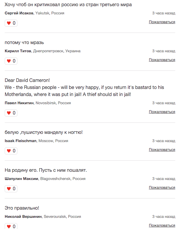 Тут даже непонятно, с чего начинать, да и стоит ли. Вот вам, дорогие читатели Лапшеснималочной, нужно ли на пальцах объяснять, что нет, никакие “возмущённые англичане” не собирают подписи за депортацию Ходорковского, что это “издание” “Ридус” само завело эту петицию и само там подписалось и написало “новость”, достаточно просто посмотреть на комментарии от подписавшихся “возмущённых англичан”?